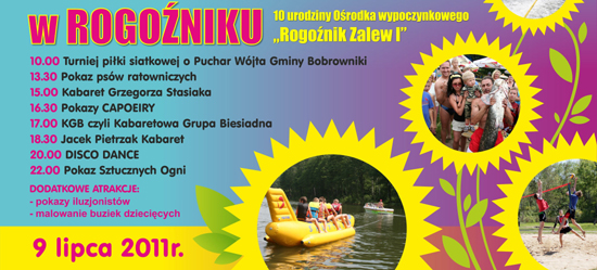 Chciałem zaprosić redakcję telewizji bobrowniki.tv i wszystkich mieszkańców naszej gminy na jubileusz 10-lecia istnienia Ośrodka Wypoczynkowego "Rogoźnik Zalew I".