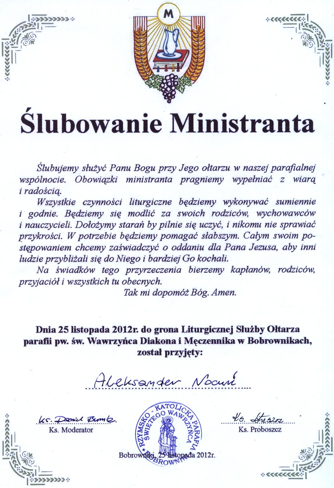 2012-11-25 20:59:01 parafiankaWszystkim Ministrantom życzę wytrwałości w podjętej służbie Bogu i Kościołowi.