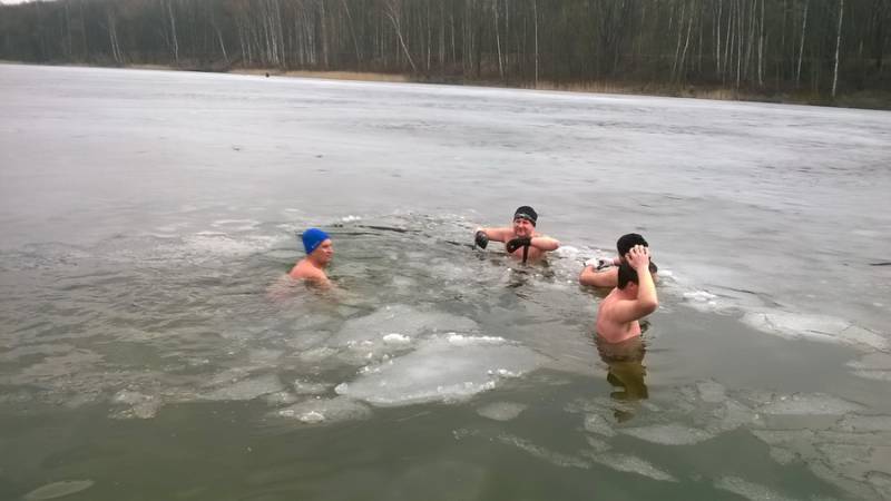 Po raz kolejny w niedzielne południe w wodzie spotkało się kilku zaprzyjaźnionych amatorów zimowych kąpieli : Paweł, Marek, Grzegorz, Krzysiek.