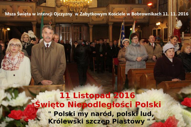 Zarządy Stowarzyszenia na rzecz ochrony zabytkowego kościoła św. Wawrzyńca i Fundacji ZWIASTUN zaprosiły na to dziękczynno-błagalne nabożeństwo poczty sztandarowe i wszystkich o patriotycznym stanie serca i umysłu - do udziału w zbiorowej modlitwie w intencji Ojczyzny i Bobrowczan, którzy za jej niepodległość i wolność oddali życie.