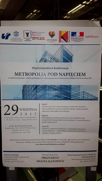 W dniu 29 września 2017 w sali konferencyjnej w CINiBa w Katowicach odbyła się konferencja "Metropolia pod napięciem" Konferencja obejmowała trzy sesje tematyczne: