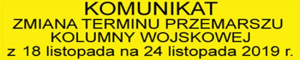 KOMUNIKAT o zmianie TERMINU PRZEMARSZU KOLUMNY WOJSKOWEJ z 18 listopada na 24 listopada 2019 r.