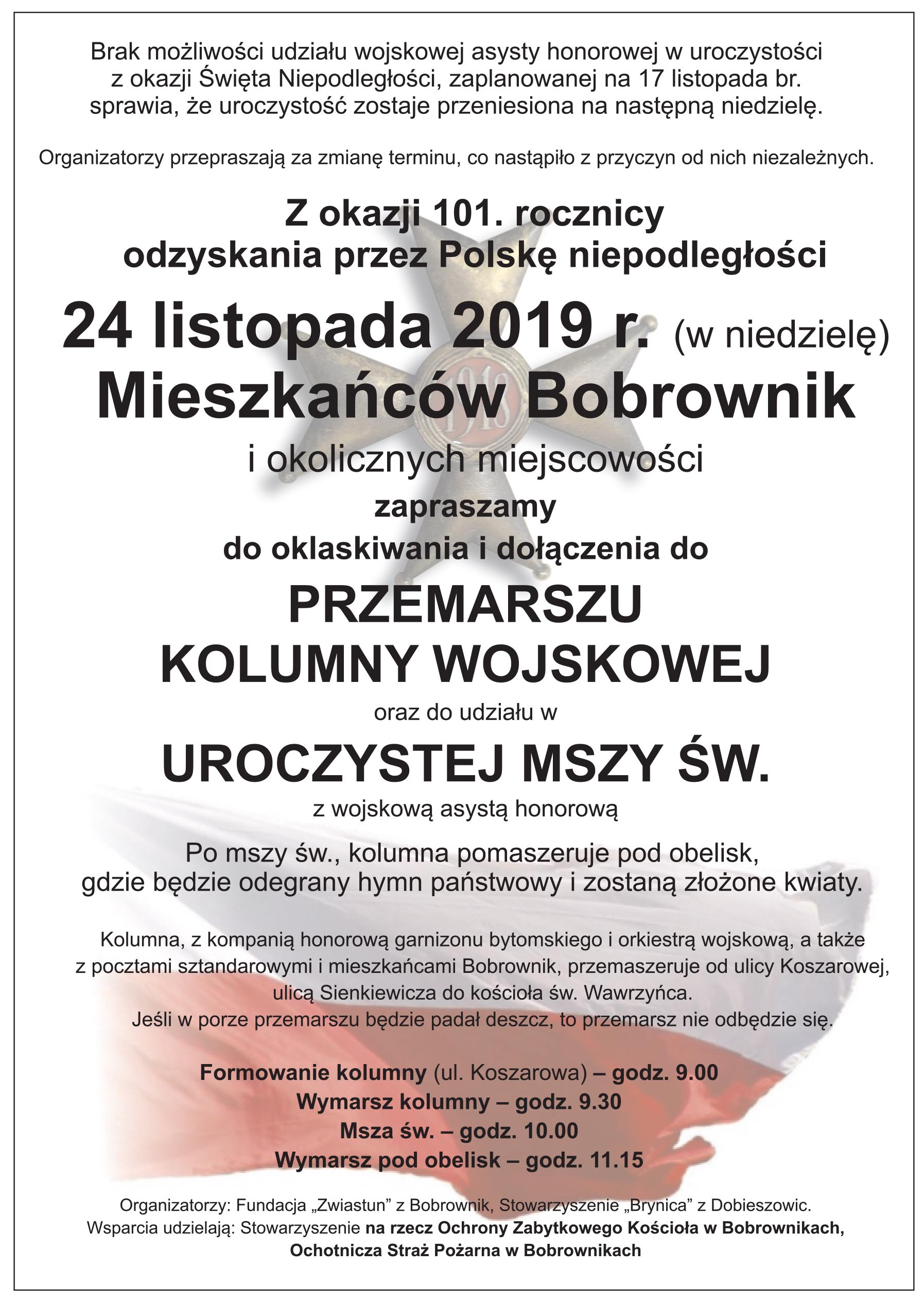 Ulotki formatu A5 o poniższej treści będą dostarczane przez listonoszy od jutra tj. 23 listopada do wszystkich posesji na terenie solectwa Bobrowniki